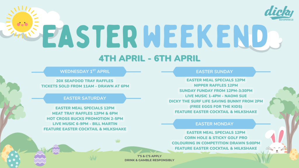 • Dicky the Surf Life Saving Bunny from 2pm (FREE eggs for the kids